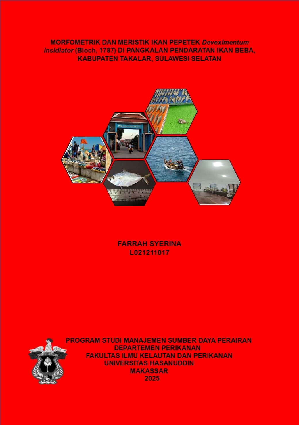 SYERINA, FARRAH (2025) MORFOMETRIK DAN MERISTIK IKAN PEPETEK Deveximentum insidiator (Bloch, 1787) DI PANGKALAN PENDARATAN IKAN BEBA, KABUPATEN TAKALAR, SULAWESI SELATAN = Morphometrics and Meristics of Pugnose Ponyfish, Deveximentum insidiator (Bloch, 1787) at Beba Fish Landing, Takalar Regency, South Sulawesi. Skripsi thesis, Universitas Hasanuddin.