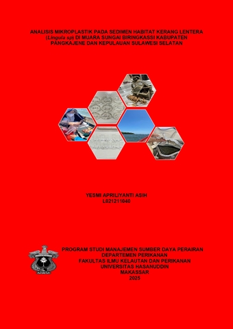 ASIH, YESMI APRILIYANTI (2025) Analisis Mikroplastik pada Sedimen Habitat Kerang Lentera (Lingula sp) di Muara Sungai Biringkassi, Kabupaten Pangkajene dan Kepulauan, Sulawesi Selatan = Analysis of Microplastics in Lantern Shells (Lingula sp) Habitat Sediment at the Biringkassi River Estuary, Pangkajene and Islands Regency, South Sulawesi. Skripsi thesis, Universitas Hasanuddin.