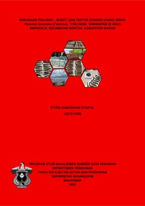 ABSTRAK Fitria Ramadhani Syaiful. Hubungan panjang-bobot udang windu Penaeus monodon (Fabricius 1978) hasil tangkapan di Desa Ampekale, Kecmatan Bontoa, Kabupaten Maros (dibimbing oleh Joeharnani Tresnati). Latar belakang. Informasi biologi perikanan sangat diperlukan untuk mengetahui status populasi komoditas perikanan di alam, terutama bagi spesies dengan nilai ekonomi tinggi seperti udang windu. Salah satu daerah yang menjadi lokasi penangkapan udang windu secara alami adalah Desa Ampekale. Tujuan. Penelitian ini bertujuan untuk menganalisis hubungan panjang-bobot dan faktor kondisi udang windu hasil tangkapan di Desa Ampekale. Hasil penelitian ini diharapkan dapat memberikan informasi ilmiah mengenai pola pertumbuhan dan kondisi tubuh udang windu di Desa Ampekale. Metode. Penelitian ini dilakukan di bulan Desember 2024 hingga akhir Januari 2025. Pengambilan sampel dilakukan sebanyak tiga kali dengan interval waktu dua minggu selama dua bulan di tiga stasiun yang berbeda. Stasiun I berada di muara sungai, stasiun II berada di dekat mangrove, dan stasiun III berada di perairan laut. Pengukuran panjang dan bobot dilakukan langsung di lapangan, dan data dianalisis menggunakan program software Microsoft Excel 2019. Hasil. Jumlah sampel udang windu terdiri dari 154 ekor yang terdiri dari 78 ekor udang jantan dan 76 ekor udang betina dengan nilai koefisien b udang windu jantan dan betina di stasiun I masing-masing sebesar 2,3771 dan 2,7043. Pada stasiun II koefisien b udang windu jantan dan betina 2,5738 dan 2,1252. Pada stasiun III koefisien b udang windu jantan dan betina 2,7904 dan 2,9150. Hasil analisis ini menunjukkan tipe pertumbuhan yang bervariasi antara allometrik negatif dan isometrik. Nilai faktor kondisi tertinggi pada penelitian ini sebesar 1,2787 yang menunjukkan dalam kondisi baik. Kesimpulan. Hubungan panjang dan bobot udang windu (Penaeus monodon) hasil tangkapan nelayan di Desa Ampekale berdasarkan stasiun pengambilan sampel memiliki pola pertumbuhan dominan yaitu allometrik negatif dimana pertambahan panjang lebih cepat dibandingkan pertambahan bobot tubuhnya. Faktor kondisi dengan nilai rata-rata di atas satu mengindikasikan bahwa perairan Desa Ampekale merupakan lingkungan yang mendukung pertumbuhan udang windu secara alami.