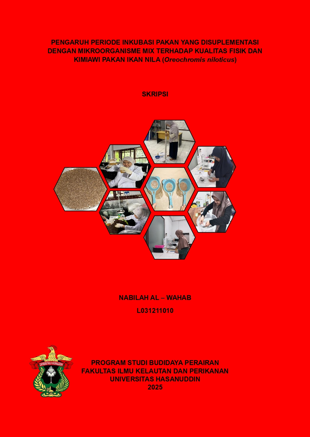 AL- WAHAB, NABILAH (2025) Pengaruh Periode Inkubasi Pakan yang Disuplementasi dengan Mikroorganisme Mix terhadap Kualitas Fisik dan Kimiawi Pakan Ikan Nila (Oreochromis niloticus) = Effect of Incubation Period on Supplemented Feed with Mixed Microorganisms on the Physical and Chemical Quality of Tilapia Fish Feed (Oreochromis niloticus). Skripsi thesis, Universitas Hasanuddin.