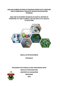 RAHMADI, ABDULLAH IRFAN (2025) Analisis Sumber Nutrien Di Perairan Pesisir Kota Parepare Serta Dampaknya Terhadap Kesehatan Ekosistem Perairan - Analysis of Nutrient Sources in Coastal Waters of Parepare City and Its Impact on The Health of Aquatic Ecosystems. Thesis thesis, Universitas Hasanuddin.