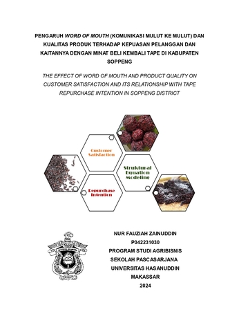 ZAINUDDIN, NUR FAUZIAH (2025) Pengaruh Word of Mouth (Komunikasi Mulut ke Mulut) dan Kualitas Produk Terhadap Kepuasan Pelanggan dan Kaitannya dengan Minat Beli Kembali Tape di Kabupaten Soppeng = The Effect of Word of Mouth and Product Quality on Customer Satisfaction and Its Relationship with Tape Repurchase Intention in Soppeng District. Thesis thesis, Universitas Hasanuddin.