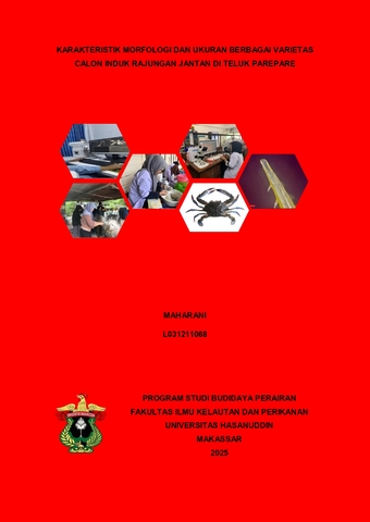 MAHARANI, MAHARANI (2025) Karakteristik Morfologi dan Ukuran Berbagai Varietas Calon Induk Rajungan Jantan di Teluk Parepare = Morphological Characteristics and Size of Various Varieties Broodstock Blue Swimming Crab in Parepare Bay. Skripsi thesis, Universitas Hasanuddin.