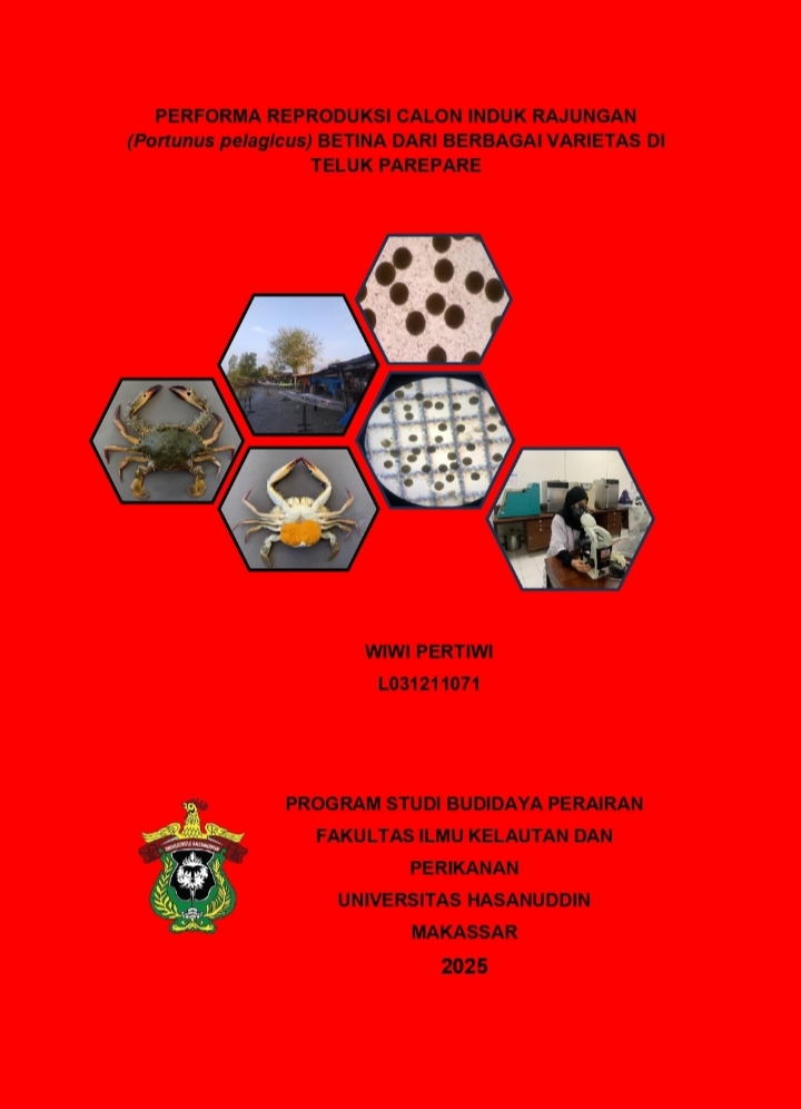 Pertiwi, Wiwi (2025) Performa Reproduksi Calon Induk Rajungan (Portunus Pelagius) Betina Dari Berbagai Varietas Di Teluk Parepare (dibimbing oleh Yushinta Fujaya). = Reproductive Performance of Female Blue Swimming Crab (Portunus Pelagicus) Broodstock From Various Varieties In Parepare Bay (Supervised by Yushinta Fujaya). Skripsi thesis, Universitas Hasanuddin.