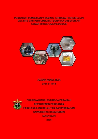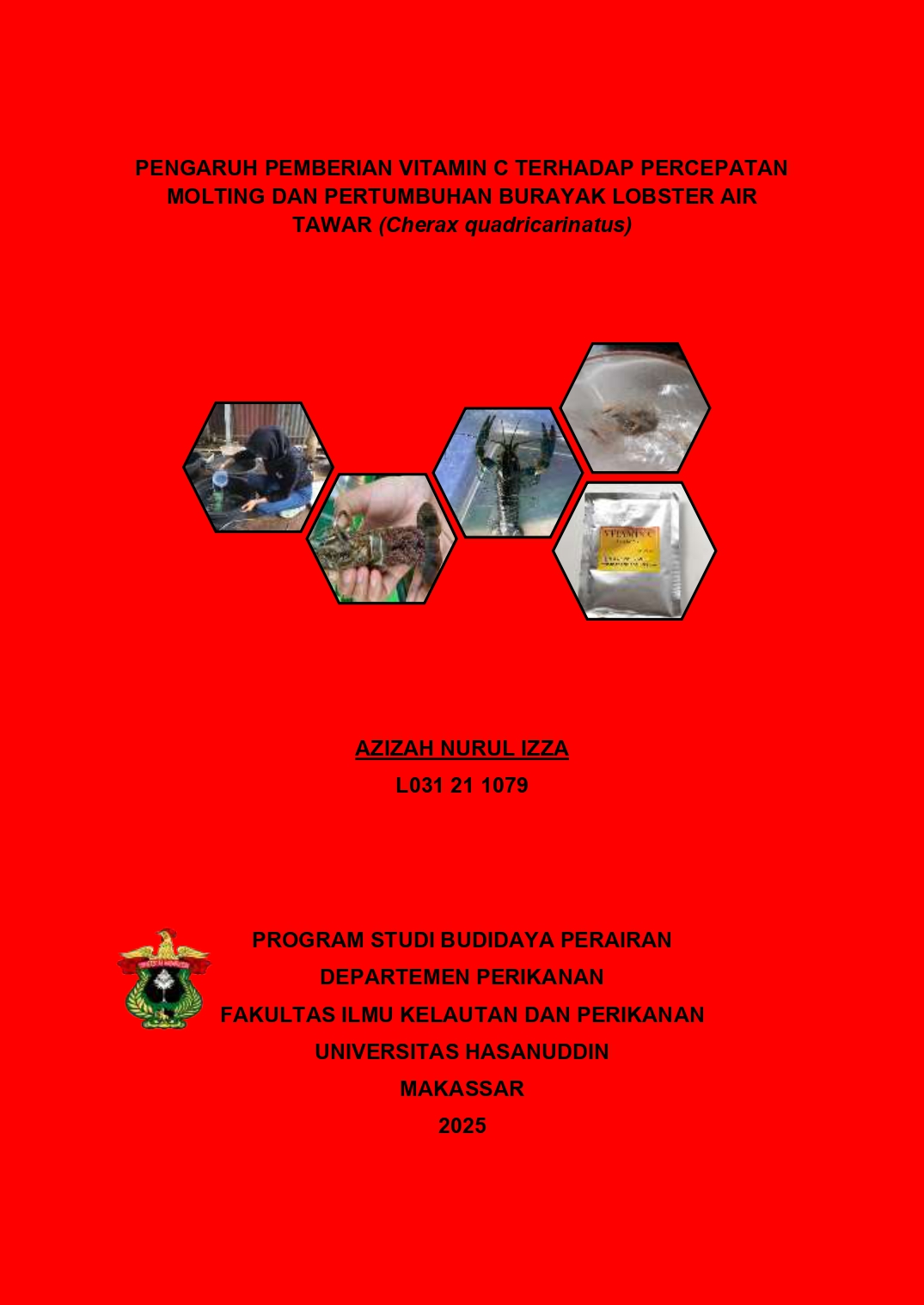 IZZA, AZIZAH NURUL (2025) PENGARUH PEMBERIAN VITAMIN C TERHADAP PERCEPATAN MOLTING DAN PERTUMBUHAN BURAYAK LOBSTER AIR TAWAR (Cherax quadricarinatus) = The Effect of Providing Vitamin C in the Maintenance Media on the Acceleration of Molting and Growth of Freshwater Lobster Fry (Cherax quadricarinatus). Skripsi thesis, Universitas Hasanuddin.