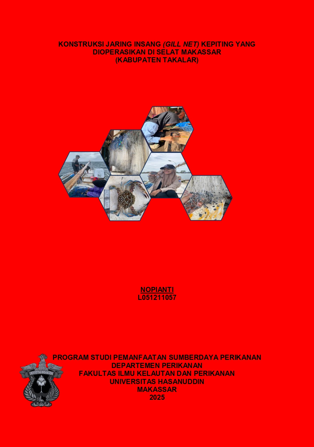 NOPIANTI, NOPIANTI (2025) KONSTRUKSI JARING INSANG (GILL NET) KEPITING YANG DIOPERASIKAN DI SELAT MAKASSAR (KABUPATEN TAKALAR) = CONSTRUCTION OF CRAB GILL NET OPERATED IN MAKASSAR STRAIT (TAKALAR REGENCY). Skripsi thesis, Universitas Hasanuddin.