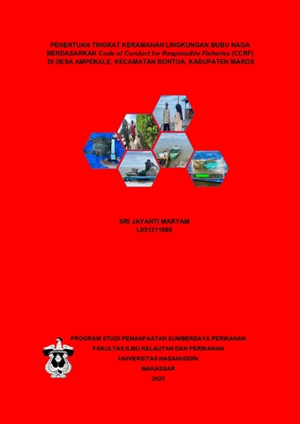 MARYAM, SRI JAYANTI (2025) PENENTUAN TINGKAT KERAMAHAN LINGKUNGAN BUBU NAGA BERDASARKAN Code of Conduct for Responsible Fisheries (CCRF) DI DESA AMPEKALE, KECAMATAN BONTOA, KABUPATEN MAROS = DETERMINATION OF DRAGON BUBU LEVEL OF ENVIRONMENTAL FRIENDLINESS BASED ON THE Code of Conduct for Responsible Fisheries (CCRF) IN AMPEKALE VILLAGE, BONTOA DISTRICT, MAROS REGENCY. Skripsi thesis, Universitas Hasanuddin.