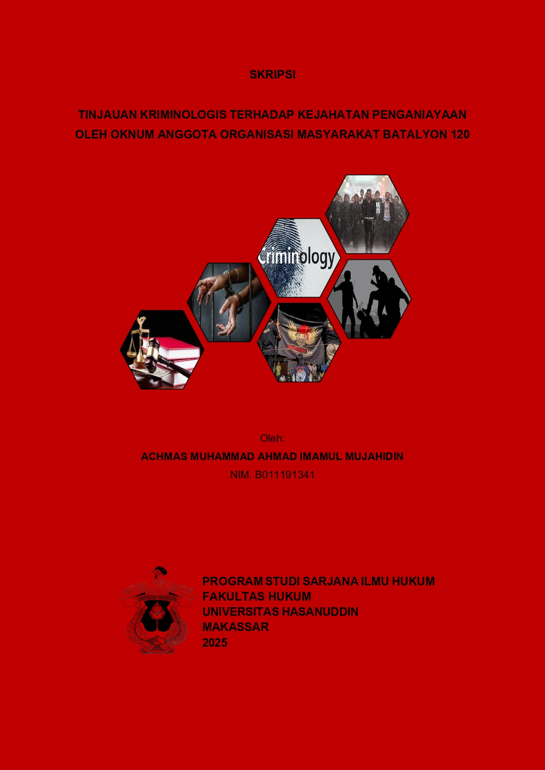MUJAHIDIN, ACHMAS MUHAMMAD AHMAD IMAMUL (2024) TINJAUAN KRIMINOLOGIS TERHADAP KEJAHATAN PENGANIAYAAN OLEH OKNUM ANGGOTA ORGANISASI MASYARAKAT BATALYON 120 = CRIMINOLOGICAL REVIEW OF THE CRIME OF PERSECUTION BY UNSCRUPULOUS MEMBERS OF BATTALION 120 MASS ORGANIZATION. Skripsi thesis, Universitas Hasanuddin.