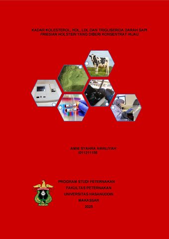 AWALIYAH, AMNI SYAHRA (2025) Kadar Kolesterol, HDL, LDL dan Trigliserida Darah Sapi Friesian Holstein yang Diberi Konsentrat Hijau = Cholesterol, HDL, LDL and Triglyceride Levels of Friesian Holstein Cattle Given Green Concentrate. Skripsi thesis, Universitas Hasanuddin.