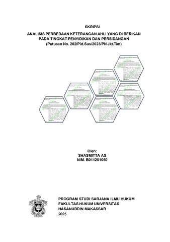 SHASMITTA. AS, SHASMITTA. AS (2025) ANALISIS PERBEDAAN KETERANGAN AHLI YANG DI BERIKAN PADA TINGKAT PENYIDIKAN DAN PERSIDANGAN (Putusan No. 202/Pid.Sus/2023/PN Jkt.Tim) = ANALYSIS OF DIFFERENCES IN EXPERT TESTIMONY GIVEN AT THE INVESTIGATION AND TRIAL LEVELS (Decision No. 202/Pid.Sus/2023/PN Jkt.Tim). Skripsi thesis, Universitas Hasanuddin.