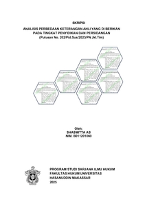 SHASMITTA AS (B011201060). Analisis Perbedaan Keterangan Ahli Yang Di Berikan Pada Tingkat Penyidikan Dan Persidangan (Putusan Pengadilan Negeri Jkt Tim No. 202/Pid.Sus/2023/PN Jkt.Tim), dibimbing oleh Said Karim. Latar Belakang: Dalam praktiknya, keterangan ahli dapat diberikan baik pada tahap penyidikan maupun di persidangan. Namun demikian, konsistensi substansi keterangan ahli antara dua tahapan tersebut sangat penting, karena inkonsistensi dapat menimbulkan keraguan terhadap keabsahan dan kekuatan pembuktian dari keterangan yang diberikan. Hal inilah yang tampak dalam perkara Haris Azhar dan Fatia Maulidiyanti, yang menjadi fokus utama dalam penelitian ini. Tujuan Penelitian: Penelitian ini mengkaji dua permasalahan utama: pertama, apakah perbedaan keterangan ahli dalam proses penyidikan dan persidangan dapat membatalkan kekuatan pembuktiannya sebagai alat bukti, Kedua, bagaimanakah keabsahan keterangan ahli yang keterangannya berbeda pada proses penyidikan dan persidangan dalam Putusan Pengadilan Negeri Jakarta Timur No. 202/Pid.Sus/2023/PN Jkt.Tim. Metode: Penelitian ini menggunakan metode penelitian hukum normatif dengan pendekatan perundang-undangan dan pendekatan konseptual. Hasil penelitian: menunjukkan bahwa inkonsistensi keterangan ahli antara tahap penyidikan dan persidangan secara signifikan mengurangi nilai kekuatan pembuktiannya. Keterangan ahli yang dihadirkan memiliki kelemahan fundamental, mencakup relevansi keahlian yang terbatas, ketidakkonsistenan substansial, metode ilmiah yang tidak dapat diverifikasi, serta potensi pelanggaran sumpah. Hal ini menyebabkan keterangan tersebut dapat dikategorikan sebagai incoherent evidence (bukti yang tidak koheren), sehingga kehilangan kekuatannya sebagai alat bukti yang meyakinkan.