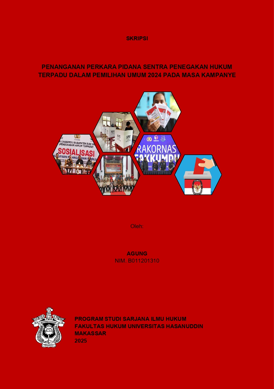 AGUNG, AGUNG (2025) PENANGANAN PERKARA PIDANA SENTRA PENEGAKAN HUKUM TERPADU DALAM PEMILIHAN UMUM 2024 PADA MASA KAMPANYE = The Handling of Criminal Cases by the Integrated Law Enforcement Center in the 2024 General Election During the Campaign Period. Skripsi thesis, Universitas Hasanuddin.