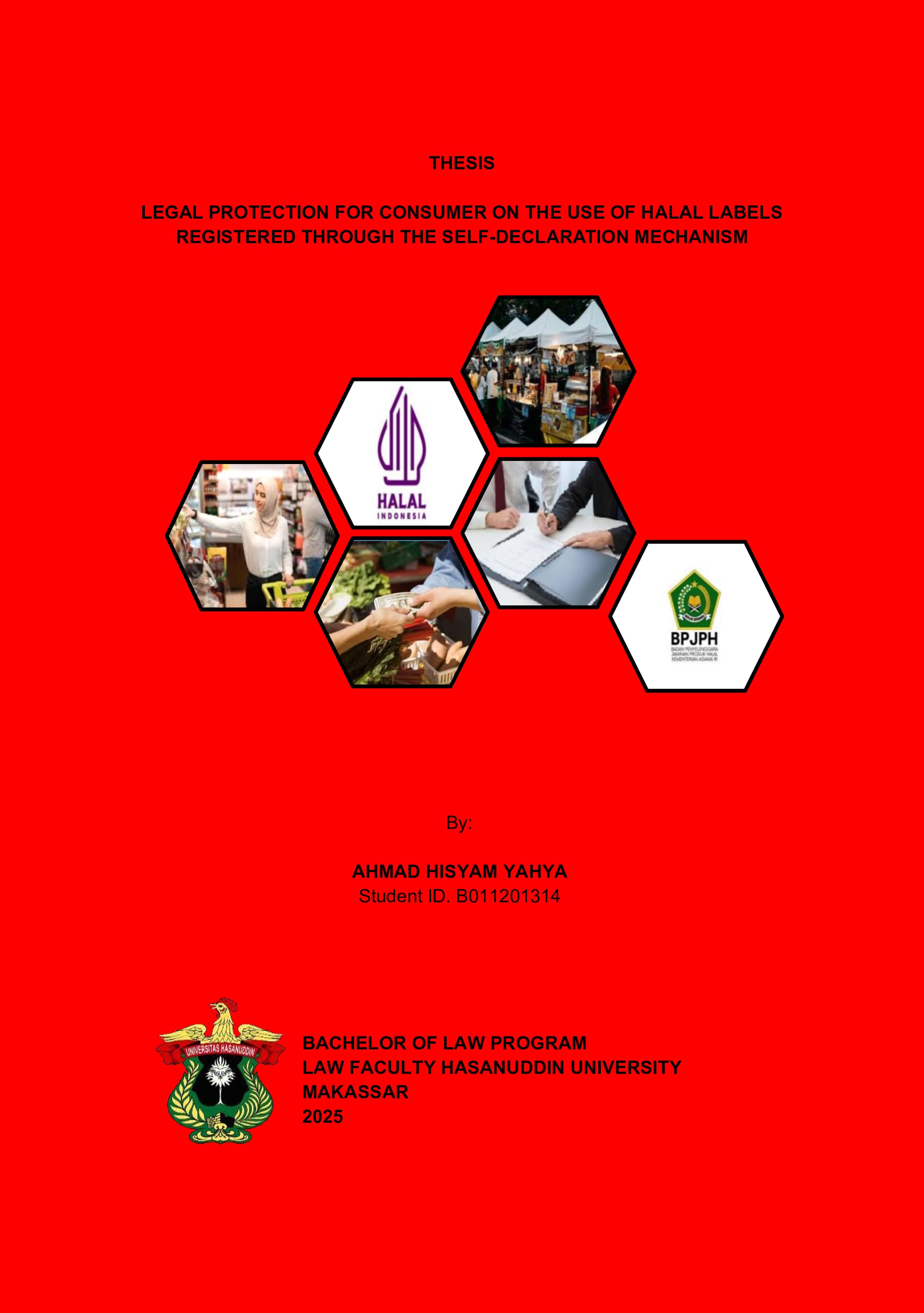 YAHYA, AHMAD HISYAM (2025) PERLINDUNGAN HUKUM BAGI KONSUMEN DALAM PENGGUNAAN LABEL HALAL YANG DIDAFTARKAN MELALUI MEKANISME PERNYATAAN SENDIRI = LEGAL PROTECTION FOR CONSUMER ON THE USE OF HALAL LABELS REGISTERED THROUGH THE SELF-DECLARATION MECHANISM. Skripsi thesis, Universitas Hasanuddin.