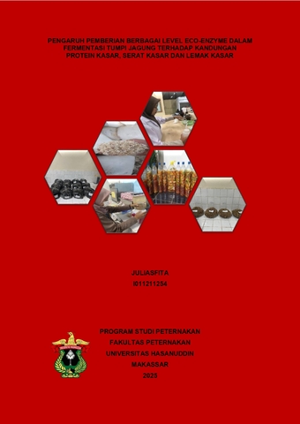 JULIASFITA, JULIASFITA (2025) Pengaruh Pemberian Berbagai Level Eco-enzyme dalam Fermentasi Tumpi Jagung Terhadap Kandungan Protein Kasar, Serat Kasar dan Lemak Kasar = The effect of Adding Various o Eco-enzyme on the Fermentation of Corn Cobs on Crude Protein, Crude Fiber and Ether Extract Contect. Skripsi thesis, Universitas Hasanuddin.