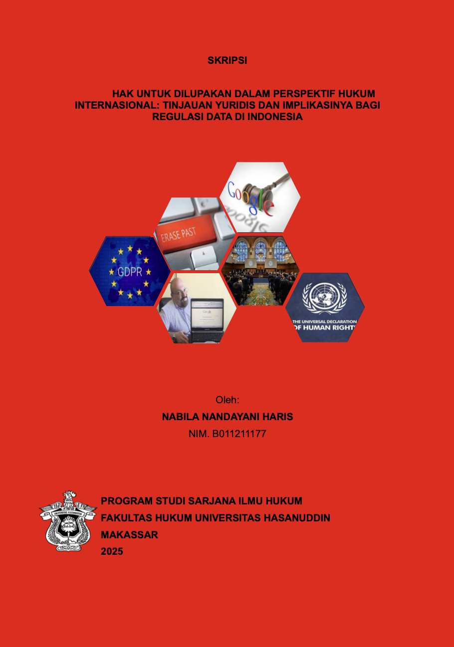 HARIS, NABILA NANDAYANI (2025) HAK UNTUK DILUPAKAN DALAM PERSPEKTIF HUKUM INTERNASIONAL: TINJAUAN YURIDIS DAN IMPLIKASINYA BAGI REGULASI DATA DI INDONESIA = The Right to be Forgotten from an International Law Perspective: A Juridical Review and its Implications for Data Regulation in Indonesia. Skripsi thesis, Universitas Hasanuddin.