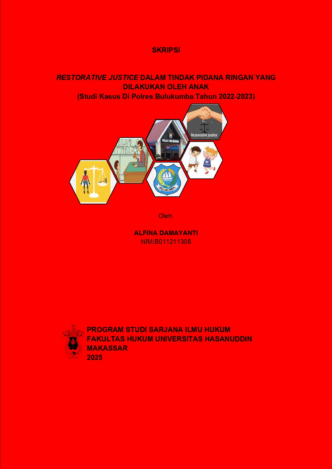 DAMAYANTI, ALFINA (2025) RESTORATIVE JUSTICE DALAM TINDAK PIDANA RINGAN YANG DILAKUKAN OLEH ANAK (STUDI KASUS DI POLRES BULUKUMBA TAHUN 2022-2023) =RESTORATIVE JUSTICE IN MINOR CRIMINAL OFFENSES COMMITTED BY CHILDREN (CASE STUDY AT BULUKUMBA POLICE DEPARTMENT 2022-2023). Skripsi thesis, Universitas Hasanuddin.