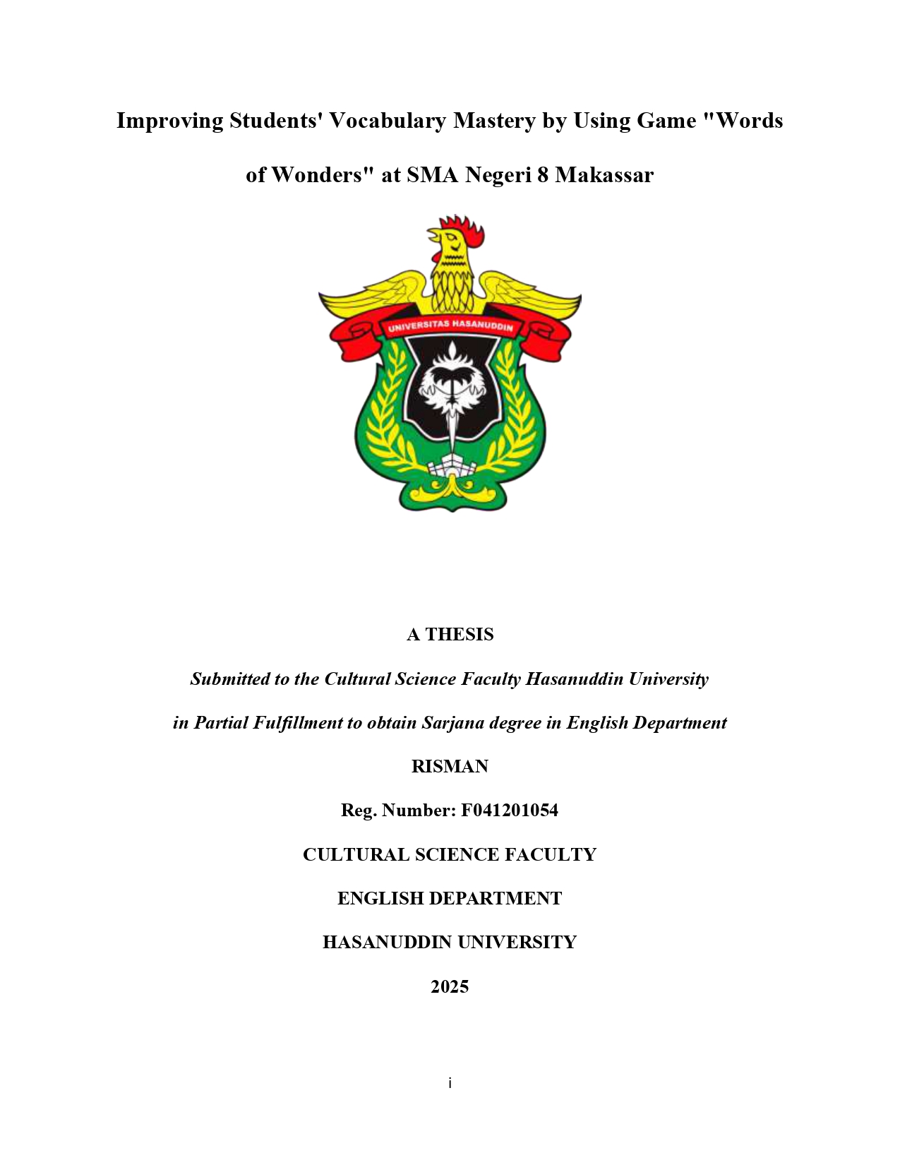RISMAN, RISMAN (2025) Peningkatan Kemampuan Kosakata Siswa/i dengan Menggunakan Permainan Words of Wonders di SMA Negeri 8 Makassar = Improving Students' Vocabulary Mastery by Using Game "Words of Wonders" at SMA Negeri 8 Makassar. Skripsi thesis, Universitas Hasanuddin.