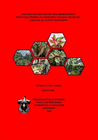 AHMAD, ATIQAH ULYAH (2025) Analisis Faktor-Faktor yang Memengaruhi Keputusan Pembelian Konsumen Tanaman Sri Rejeki (Aglonema sp.) Di Kota Makassar = Analysis of Factors Influencing Consumer Purchasing Decisions of Sri Rejeki Plants (Aglonema sp.) in Makassar City. Skripsi thesis, Universitas Hasanuddin.
