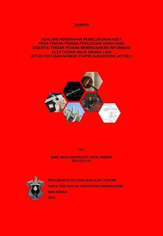 ARWAN, ANDI MUH.FAKHRUSYI FATIR (2025) Analisis Penerapan Penelusuran Aset Pada Tindak Pidana Pencucian Uang Yang Disertai Tindak Pidana Memindahkan Informasi Elektronik Milik Orang Lain ( Studi Putusan Nomor 274/Pid.Sus/2023/PN.Jkt.Sel) = Analysis of the Application of Follow The Asset in Money Laundering Crimes Accompanied by Phishing (Study of Decision Number 274/Pid.Sus/PN.Jkt.Sel). Skripsi thesis, Universitas Hasanuddin.