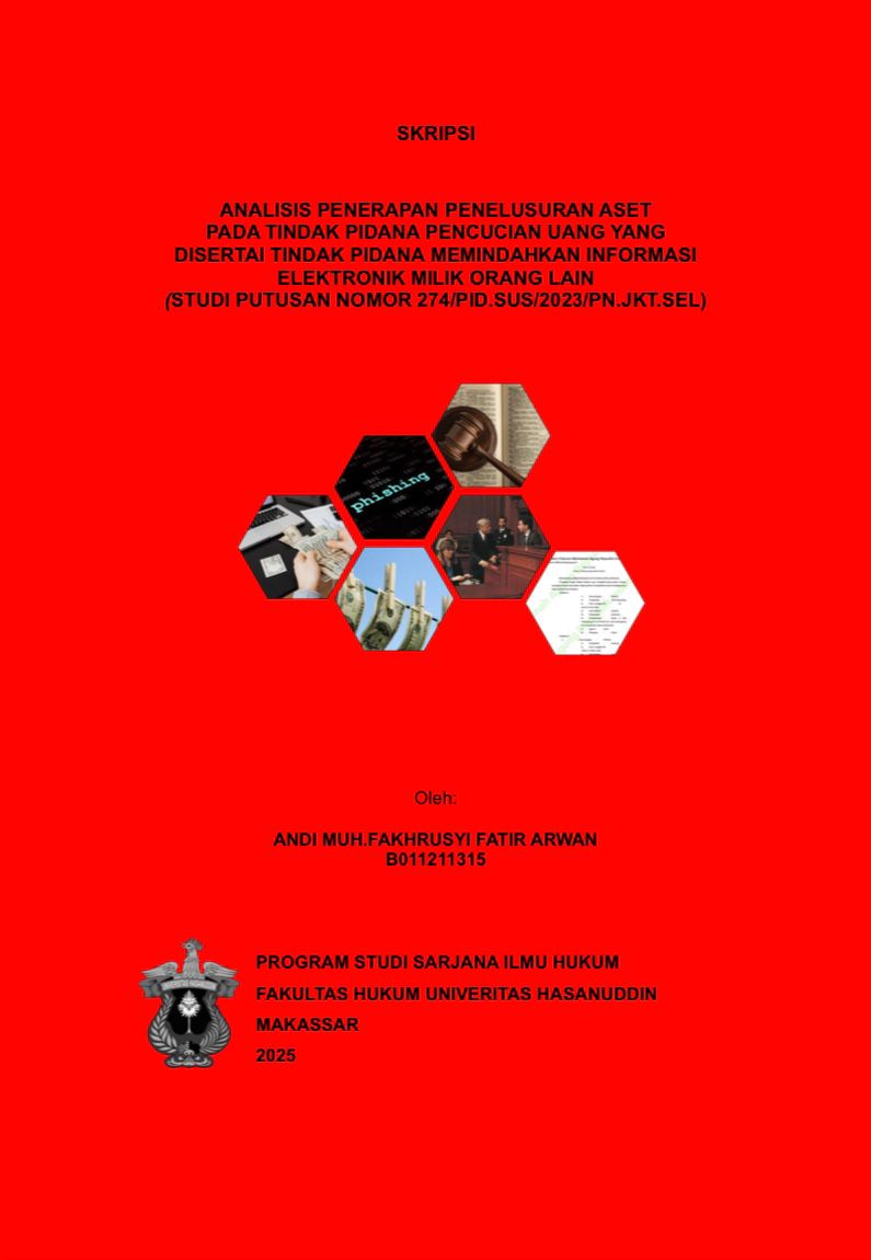ANDI MUH.FAKHRUSYI FATIR ARWAN (B011211315) dengan judul “Analisis Penerapan Penelusuran Aset Pada Tindak Pidana Pencucian Uang Yang Disertai Tindak Pidana Memindahkan Informasi Elektronik Milik Orang Lain (Studi Putusan Nomor 274/Pid.Sus/2023/PN.Jkt.Sel)”. Di bawah bimbingan Syarif Saddam Rivanie selaku Pembimbing. Latar Belakang: Pencucian uang yang berasal dari kejahatan siber, menghadirkan kompleksitas bagi penegakan hukum. Kecepatan transaksi, anonimitas pelaku, menyulitkan pelacakan aset hasil kejahatan. Oleh karena itu, penelusuran aset menjadi pendekatan investigatif yang penting untuk mengungkap aliran dana ilegal dalam kasus-kasus tersebut. Tujuan: Untuk menganalisis penerapan prinsip Penelusuran Aset dalam mengungkap pencucian uang yang terkait dengan link phishing, serta penerapan hukum pidana, termasuk pertimbangan hakim dan aspek pemidanaan terhadap pelaku pencucian uang dari tindak pidana tersebut. Metode: Penelitian ini menggunakan metode penelitian hukum normatif dengan pendekatan konseptual dan pendekatan kasus. Sumber Hukum Primer berasal dari Perundang undangan, Sumber Hukum Sekunder berasal dari Buku maupun jurnal penelitian hukum. Hasil: Dalam kasus pencucian uang yang berasal dari link phishing, prinsip Penelusuran Aset digunakan untuk melacak dana ilegal melalui beberapa tahap hingga menjadi aset. Putusan Nomor 274/Pid.Sus/2023/PN.Jkt.Sel, para Terdakwa terbukti bersalah melakukan phishing dan pencucian uang secara bersama-sama. Hakim secara implisit menggunakan hasil Penelusuran Aset untuk menelusuri aliran dana dari korban ke terdakwa. Penuntut umum juga tidak mendakwakan para tersangka dengan Pasal 65 KUHP yaitu concursus realis dalam penjatuhan hukuman. Kesimpulan: Penelusuran Aset merupakan metode yang sangat efektif untuk diterapkan pada pencucian uang yang disertai Tindak Pidana Memindahkan Informasi Elektronik Milik Orang Lain.