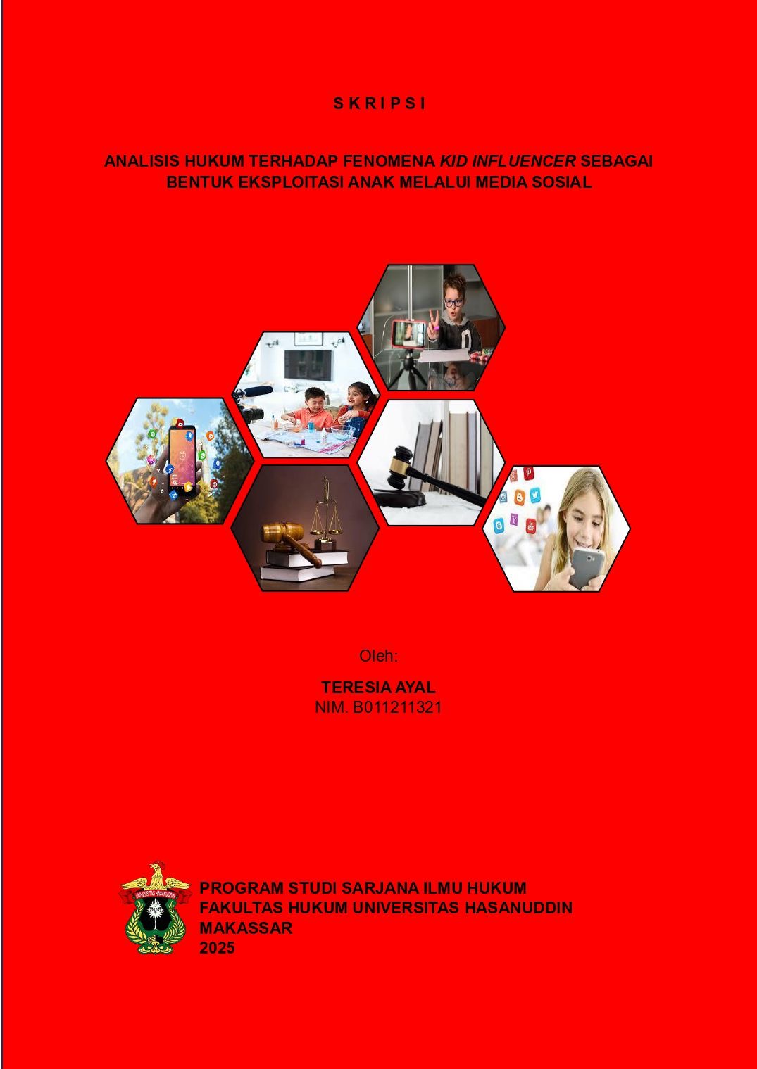AYAL, TERESIA (2025) ANALISIS HUKUM TERHADAP FENOMENA KID INFLUENCER SEBAGAI BENTUK EKSPLOITASI ANAK MELALUI MEDIA SOSIAL = LEGAL ANALYSIS OF THE KID INFLUENCER PHENOMENON AS A FORM OF CHILD EXPLOITATION THROUGH SOCIAL MEDIA. Skripsi thesis, Universitas Hasanuddin.