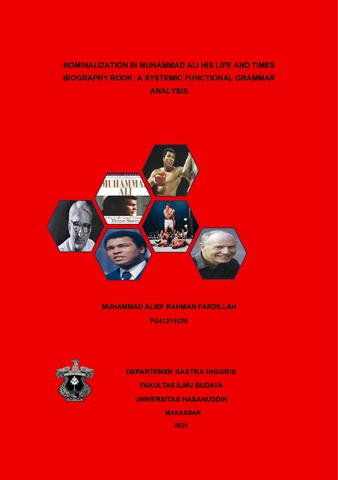 FARDILLAH, MUHAMMAD ALIEF RAHMAN (2025) Nominalisasi dalam Buku Biografi Muhammad Ali: His Life and Times Analisis Tata Bahasa Fungsional Sistemik = Nominalization In Muhammad Ali His Life And Times Biography Book: A Systemic Functional Grammar Analysis. Skripsi thesis, Universitas Hasanuddin.