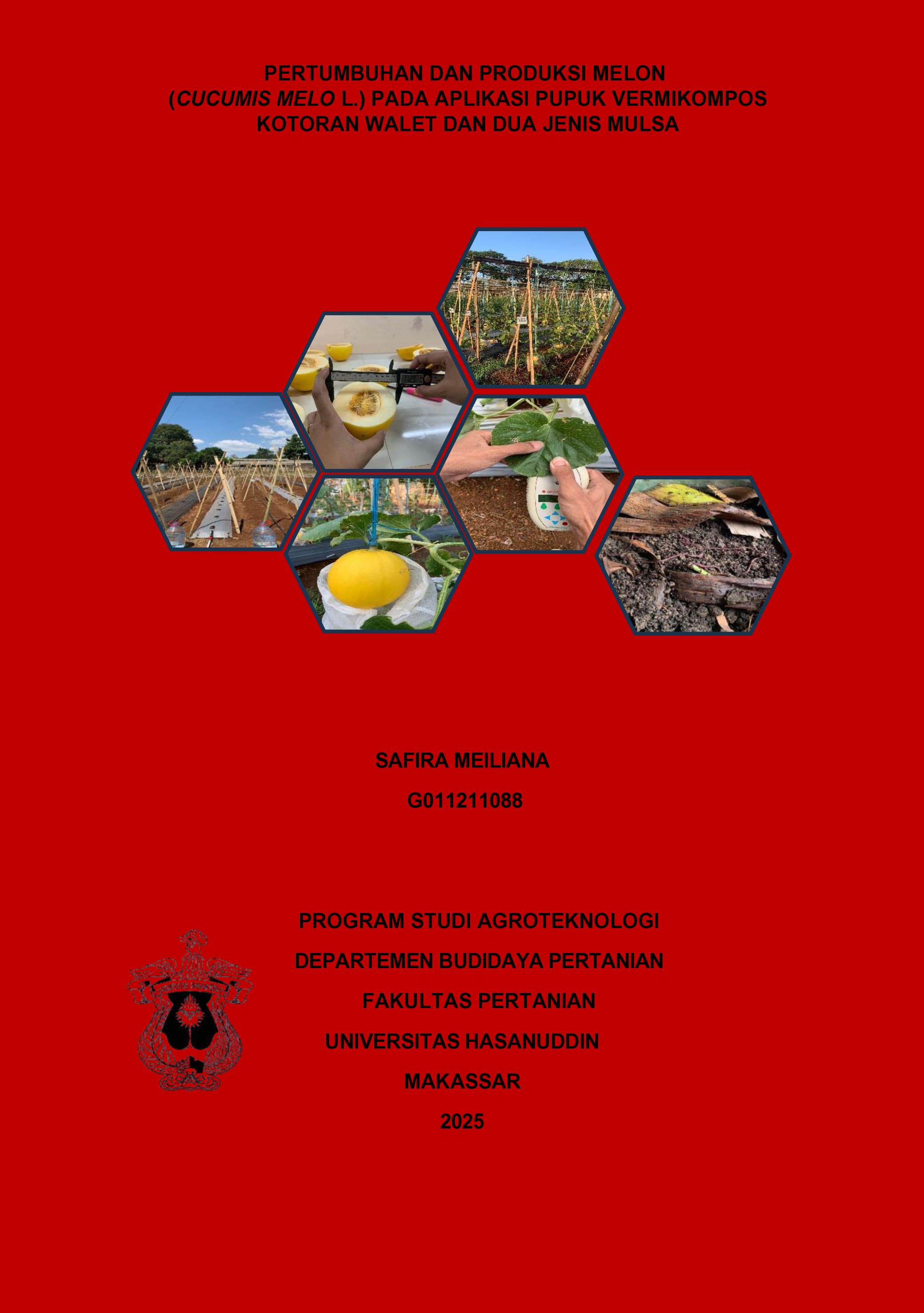 MEILIANA, SAFIRA (2025) Pertumbuhan dan Produksi Melon (Cucumis melo L.) pada Aplikasi Pupuk Vermikompos Kotoran Walet dan Dua Jenis Mulsa = Growth and Production of Melon (Cucumis melo L.) on Application of Vermicompost Fertilizer, Swiftlet Manure and Two Types of Mulch. Skripsi thesis, Universitas Hasanuddin.