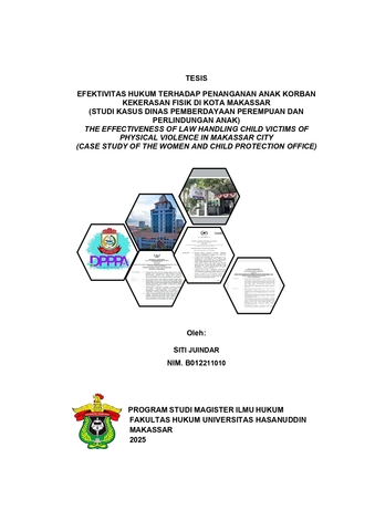 JUINDAR, SITI (2025) Efektivitas Hukum Terhadap Penanganan Anak Korban Kekerasan Fisik di Kota Makassar (Studi Kasus Dinas Pemberdayaan Perempuan dan Perlindungan Anak) = The Efektivenes of law handling child victims of physical violence in makassar city (study of the women and child protection office). Thesis thesis, Universitas Hasanuddin.