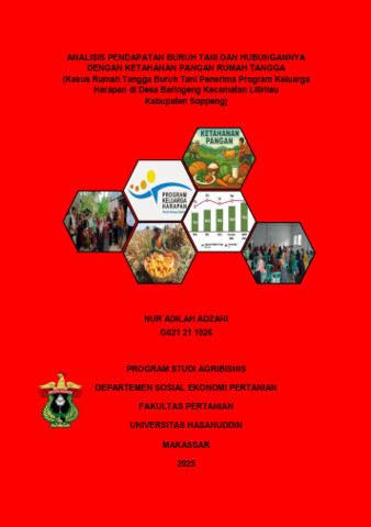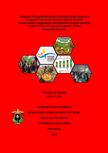ADZANI, NUR ADILAH (2025) Analisis Pendapatan Buruh Tani dan Hubungannya dengan Ketahanan Pangan Rumah Tangga (Kasus Rumah Tangga Buruh Tani Penerima Program Keluarga Harapan di Desa Baringeng Kecamatan Lilirilau Kabupaten Soppeng) = Analysis of Farm Laborers’ Income and Its Relationship with Household Food Security (Case of Farm Laborers’ Households Receiving Conditional Cash Transfer Program in Baringeng Village, Lilirilai District, Sopppeng Regency). Skripsi thesis, Universitas Hasanuddin.