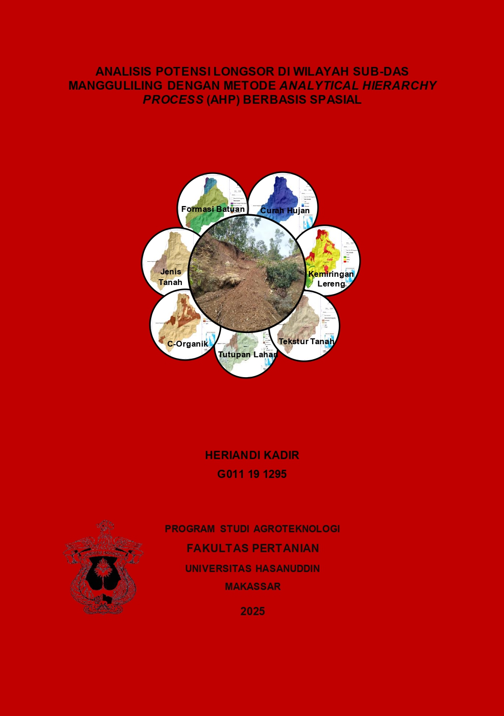 KADIR, HERIANDI (2025) . Analisis Potensi Longsor di Wilayah Sub-DAS Mangguliling dengan Metode Analytical Hierarchy Process (AHP) Berbasis Spasial = Landslide Potential Analysis in Mangguliling Sub-DAS Area Using Spatial Based Analytical Hierarchy Process (AHP) Method. Skripsi thesis, Universitas Hasanuddin.