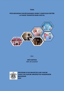 DWI KARTIKA (B012222005), Perlindungan Hukum Nasabah Akibat Gangguan Sistem Layanan Transfer Bank Digital. Dibimbing oleh Marwah. Latar Belakang: Transformasi digital perbankan mempermudah akses layanan keuangan, tetapi juga menimbulkan tantangan, terutama gangguan sistem transfer yang merugikan nasabah. Masalah seperti pemotongan dana yang gagal masuk ke rekening tujuan dan lambatnya penanganan pengaduan mengurangi kepercayaan publik. Oleh karena itu, penting untuk mengkaji perlindungan hukum bagi nasabah serta menilai peran OJK dalam memastikan akuntabilitas layanan bank digital. Tujuan: Menganalisis perlindungan hukum bagi nasabah bank digital yang dirugikan akibat gangguan sistem transfer, khususnya terkait pengaduan dan pengembalian dana. Dan peran OJK dalam mengawasi layanan bank digital, termasuk pembinaan dan edukasi bagi pelaku usaha dan konsumen. Metode: Penelitian ini adalah penelitian empiris dengan data primer dari wawancara dan kuesioner kepada nasabah BluBCA, Bank Neo Commerce, dan SeaBank, serta data sekunder dari regulasi, literatur hukum, dan dokumen OJK. Analisis dilakukan secara deskriptif kualitatif dengan mengaitkan temuan lapangan dan norma hukum perlindungan konsumen jasa keuangan. Hasil: Perlindungan hukum bagi nasabah belum optimal. Pengaduan lambat, pengembalian dana tidak real-time, dan koordinasi antar bank lemah, menimbulkan ketidakpastian hukum. Peran OJK telah berjalan, tetapi implementasinya belum efektif, dengan lemahnya monitoring dan minimnya intervensi konkret. Kesimpulan: Perlindungan hukum nasabah perlu diperkuat melalui perbaikan pengaduan dan pengembalian dana yang cepat. Peran OJK juga harus ditingkatkan guna menjaga kepercayaan publik dan meminimalkan risiko hukum.