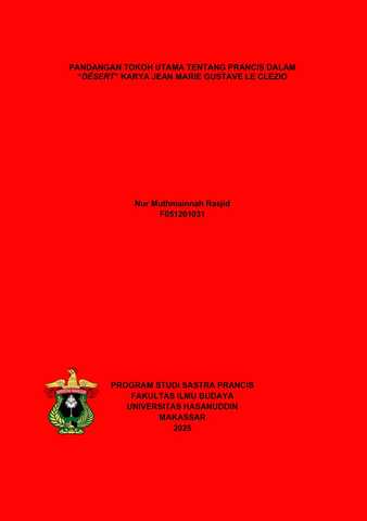 RASJID, NUR MUTHMAINNAH (2025) Pandangan Tokoh Utama Tentang Prancis Dalam Desert Karya Jean Marie Gustave Le Clezio = The Main Character's View of France in Jean-Marie Gustave Le Clezio's Desert. Skripsi thesis, Universitas Hasanuddin.
