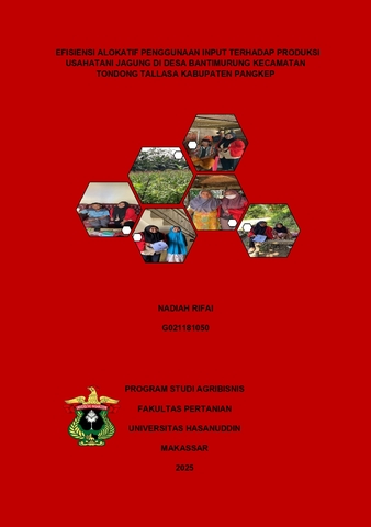 RIFAI, NADIAH (2025) Efisiensi Alokatif Penggunaan Input Terhadap Produksi Usahatani Jagung Di Desa Bantimurung Kecamatan Tondong Tallasa Kabupaten Pangkep = Allocative Efficienci Of Input Use On Corn Farming Production In Bantimurung Village Tondong Tallasa District Pangkep Regency. Skripsi thesis, Universitas Hasanuddin.