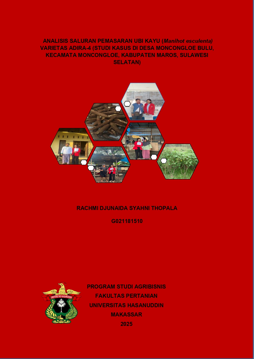 THOPALA, RACHMI DJUNAIDA SYAHNI (2025) ANALISIS SALURAN PEMASARAN UBI KAYU (Manihot esculenta) VARIETAS ADIRA-4 (STUDI KASUS DI DESA MONCONGLOE BULU, KECAMATA MONCONGLOE, KABUPATEN MAROS, SULAWESI SELATAN) = ANALYSIS OF MARKETING CHANNELS OF CASSAVA (Manihot esculenta) ADIRA-4 VARIETY (CASE STUDY IN MONCONGLOE BULU VILLAGE, MONCONGLOE DISTRICT, MAROS REGENCY, SOUTH SULAWESI). Skripsi thesis, Universitas Hasanuddin.