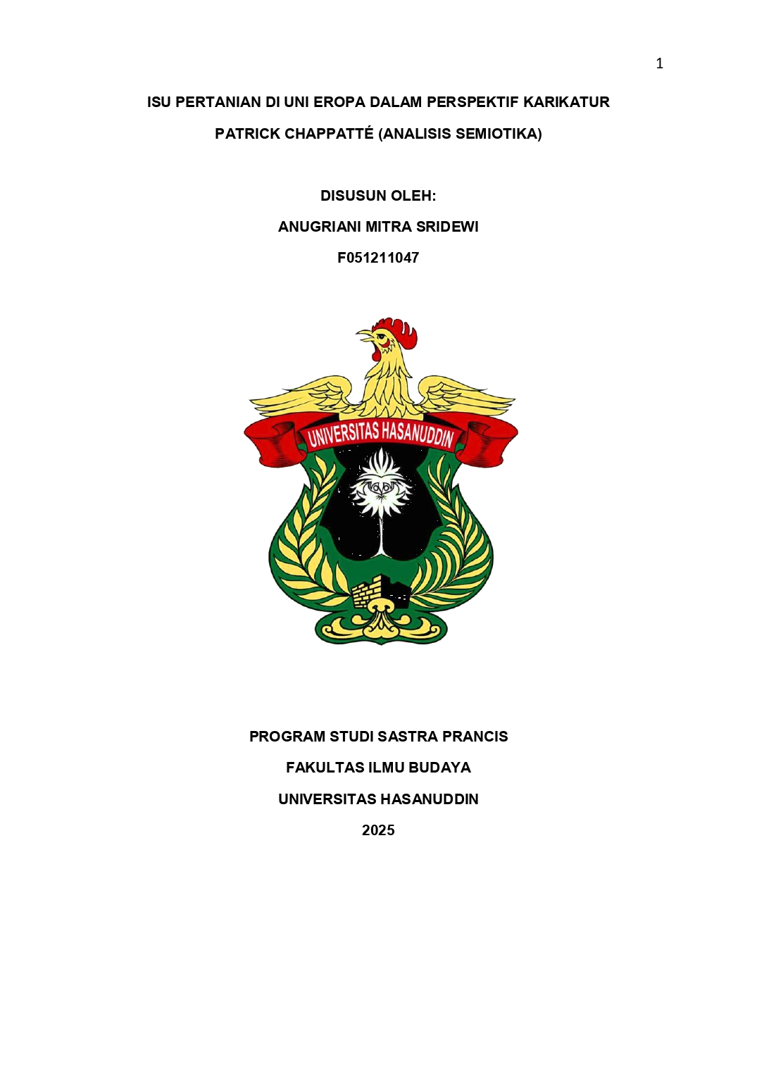SRIDEWI, ANUGRIANI MITRA (2025) ISU PERTANIAN DI UNI EROPA DALAM PERSPEKTIF KARIKATUR PATRICK CHAPPATTE (ANALISIS SEMIOTIKA) = AGRICULTURAL ISSUES IN THE EUROPEAN UNION FROM THE PERSPECTIVE OF PATRICK CHAPPATTE'S CARICATURES (A SEMIOTIC ANALYSIS). Skripsi thesis, Universitas Hasanuddin.