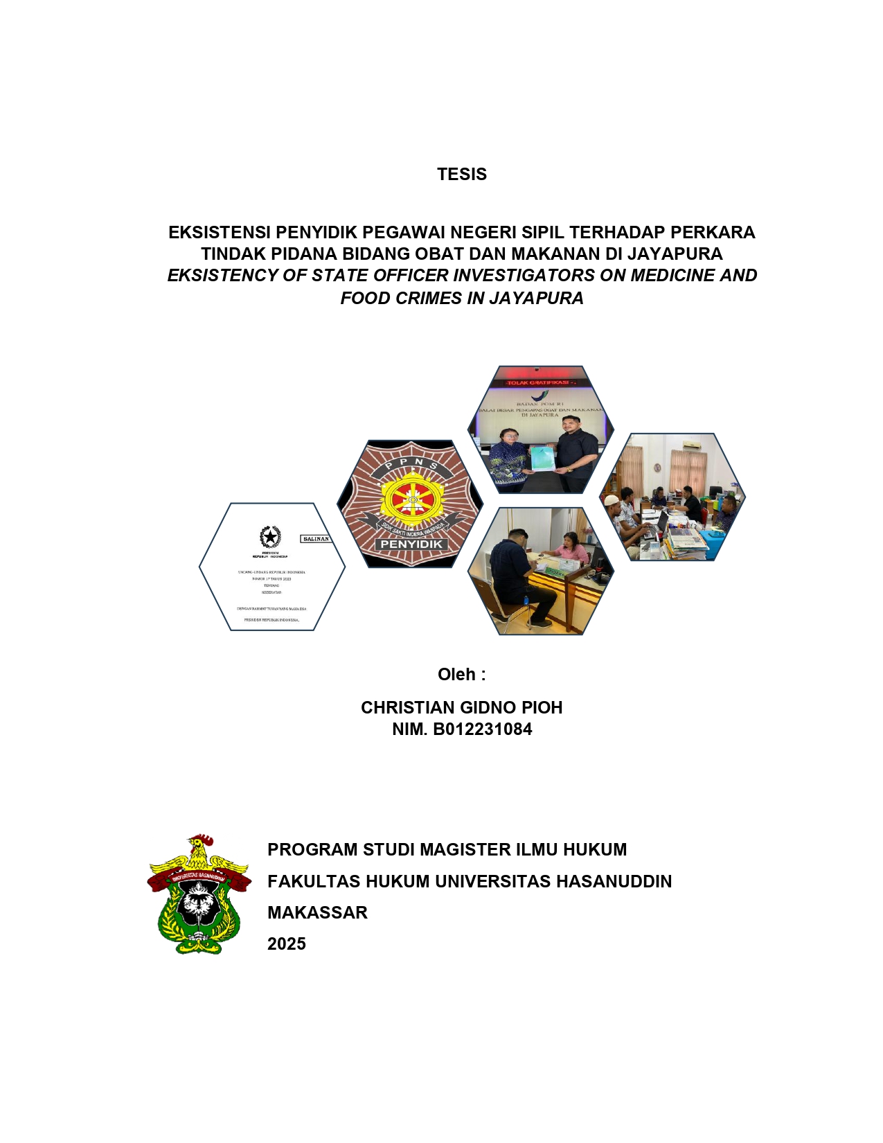 PIOH, CHRISTIAN GIDNO (2025) EKSISTENSI PENYIDIK PEGAWAI NEGERI SIPIL TERHADAP PERKARA TINDAK PIDANA BIDANG OBAT DAN MAKANAN DI JAYAPURA = EKSISTENCY OF STATE OFFICER INVESTIGATORS ON MEDICINE AND FOOD CRIMES IN JAYAPURA. Thesis thesis, Universitas Hasanuddin.