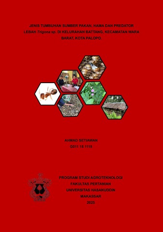 SETIAWAN, AHMAD (2025) Jenis tumbuhan sumber pakan, hama dan predator lebah Trigona sp. di Kelurahan Battang, Kecamatan Wara Barat, Kota Palopo. = Types of Plants as the Food Source, Pests and Predators of Trigona sp. in Battang Village, West Wara District, Palopo City. Skripsi thesis, KODEPRODI54211#AGROTEKNOLOGI - S1.