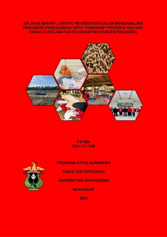 FATMA, FATMA (2025) APLIKASI BINARY LOGISTIC REGRESSION DALAM MENGANALISIS PENGARUH PENGGUNAAN INPUT TERHADAP PRODUKSI KACANG TANAH DI KECAMATAN PUJANANTING KABUPATEN BARRU = BINARY LOGISTIC REGRESSION APPLICATION IN ANALYZING THE EFFECT OF INPUT USE ON PEANUT FARMING PRODUCTION IN PUJANANTING DISTRICT BARRU REGENCY. Skripsi thesis, Universitas Hasanuddin.