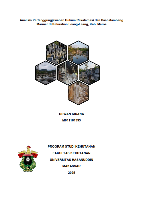 KIRANA, DEWAN (2025) Analisis Pertanggungjawaban Hukum Reklamasi dan Pascatambang Marmer Di Kelurahan Leang-Leang, Kabupaten Maros = Analysis of Legal Liability for Marble Reclamation and Post-mining in Leang-Leang Village, Maros Regency. Skripsi thesis, UNIVERSITAS HASANUDDIN MAKASSAR.