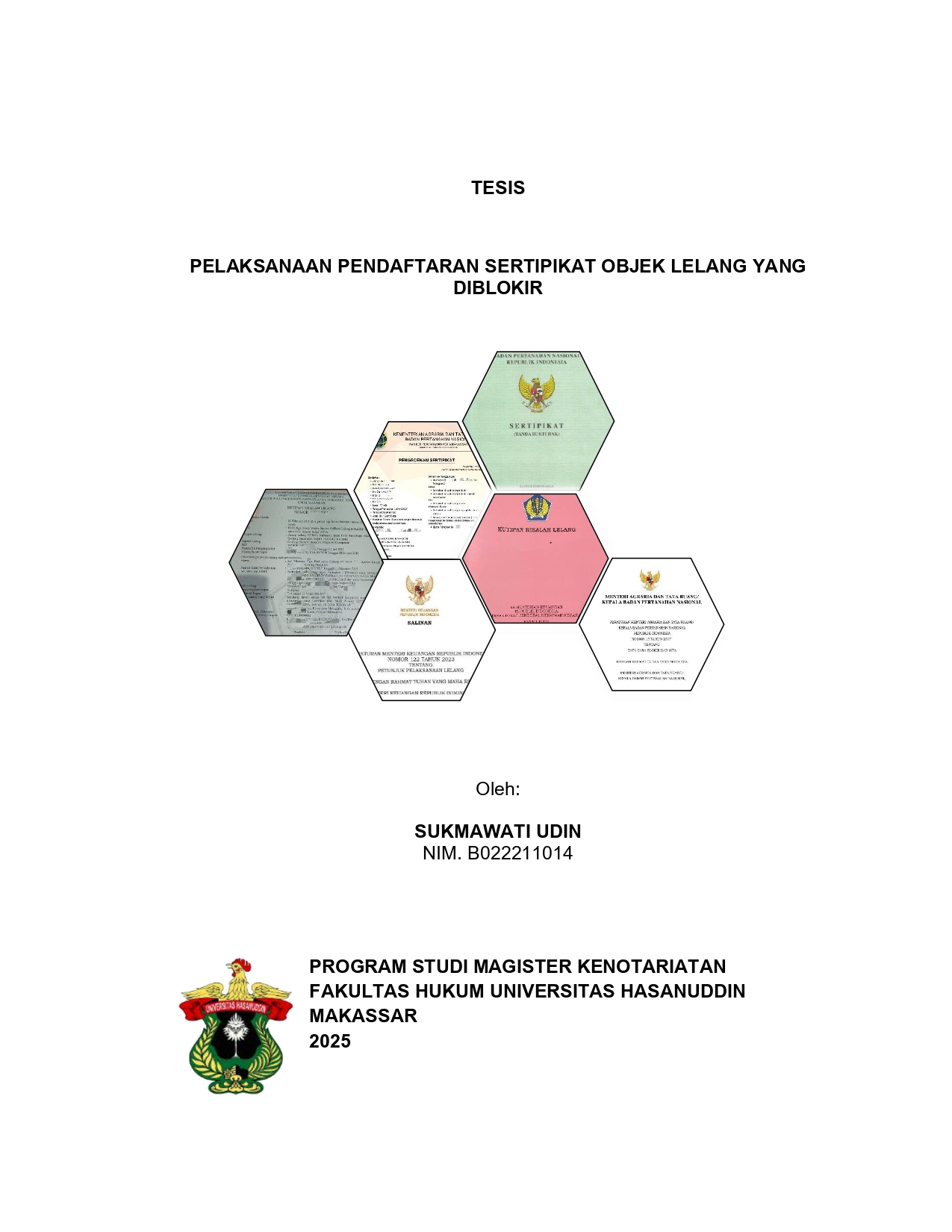 UDIN, SUKMAWATI (2025) Pelakasanaan Pendaftaran Sertipikat Objek Lelang yang Diblokir = Implementation of Registration of Auctioned Object Certificates That Are Blocked. Thesis thesis, Universitas Hasanuddin.