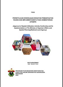 KIKI SURAESMAN (B022211024) Dengan Judul “Persetujuan Kesesuaian Kegiatan Pemanfaatan Ruang dan Implementasinya Pada Kementerian ATR/BPN.” Dibimbing oleh Naswar. Latar belakang, Langkah utama untuk mempercepat proses perizinan berusaha adalah melakukan pemangkasan syarat dan prosedur perizinan. pelaku usaha diharuskan untuk mendaftarkan Kesesuaian Kegiatan Pemanfaatan Ruang (KKPR) sebagai bukti keseriusan mereka dalam menjalankan kegiatan usaha, sebagaimana diatur dalam Pasal 107 ayat (1) Peraturan Pemerintah Nomor 21 Tahun 2021 tentang Penyelenggaraan Penataan KKPR berfungsi sebagai acuan dalam pemanfaatan ruang dan administrasi pertanahan. Tujuan, Penelitian ini bertujuan untuk menganalisis aspek hukum yang terkait dengan kewajaran dan kejelasan prosedur administratif dalam proses perizinan usaha, serta tanggung jawab pemerintah atas penolakan izin usaha setelah pembayaran PNBP. Metode, Penelitian ini menggunakan pendekatan hukum normatif untuk menganalisis sistematisasi aturan, hubungan antaraturan, dan prediksi perkembangan hukum. Data sekunder yang digunakan mencakup bahan hukum primer (peraturan perundang-undangan), sekunder (karya ilmiah dan jurnal hukum), serta tersier (informasi pendukung). Pengumpulan data dilakukan melalui studi dokumen dan kepustakaan, sementara analisis data dilakukan secara kualitatif untuk menghasilkan kesimpulan yang logis dan relevan dengan permasalahan penelitian. Hasil, Penelitian menunjukkan bahwa Penelitian ini mengkaji implementasi kewajiban pembayaran Penerimaan Negara Bukan Pajak (PNBP) dalam proses Persetujuan Kesesuaian Kegiatan Pemanfaatan Ruang yang diatur dalam berbagai regulasi terkait, dengan fokus pada aspek kepastian hukum dan prinsip keadilan. Hasil penelitian menunjukkan bahwa kewajiban pembayaran PNBP sebelum penerbitan keputusan PKKPR menimbulkan ketidakpastian hukum dan berpotensi merugikan pelaku usaha jika permohonan ditolak. Hal ini bertentangan dengan prinsip keadilan substantif yang mengharuskan perlindungan hak hak pelaku usaha dan transparansi dalam proses perizinan. Kesimpulan, Pemerintah disarankan untuk merevisi kebijakan dengan menetapkan pembayaran PNBP dilakukan setelah persetujuan diterbitkan atau memberikan mekanisme pengembalian biaya secara otomatis jika permohonan ditolak. Pendekatan ini bertujuan untuk menciptakan sistem perizinan yang lebih adil, efisien, dan kondusif bagi investasi, serta meningkatkan kepercayaan pelaku usaha terhadap sistem hukum.