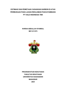 SYAMSUL, KHIRAN ABDULLAH (2025) Estimasi dan Pemetaan Cadangan Karbon di Atas Permukaan Pada Lahan Reklamasi Pascatambang PT Vale Indonesia Tbk = Estimation and Mapping of Above-Ground Carbon Stocks on Post-Mining Reclamation Land of PT Vale Indonesia Tbk. Skripsi thesis, UNIVERSITAS HASANUDDIN.
