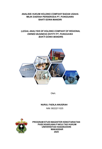 ANUGRAH, NURUL FADILA (2025) ANALISIS HUKUM HOLDING COMPANY BADAN USAHA MILIK DAERAH PERSERODA PT. PUNGGAWA BAKTI GOWA MANDIRI = LEGAL ANALYSIS OF HOLDING COMPANY OF REGIONAL OWNED BUSINESS ENTITY PT. PUNGGAWA BAKTI GOWA MANDIRI. Thesis thesis, Universitas Hasanuddin.