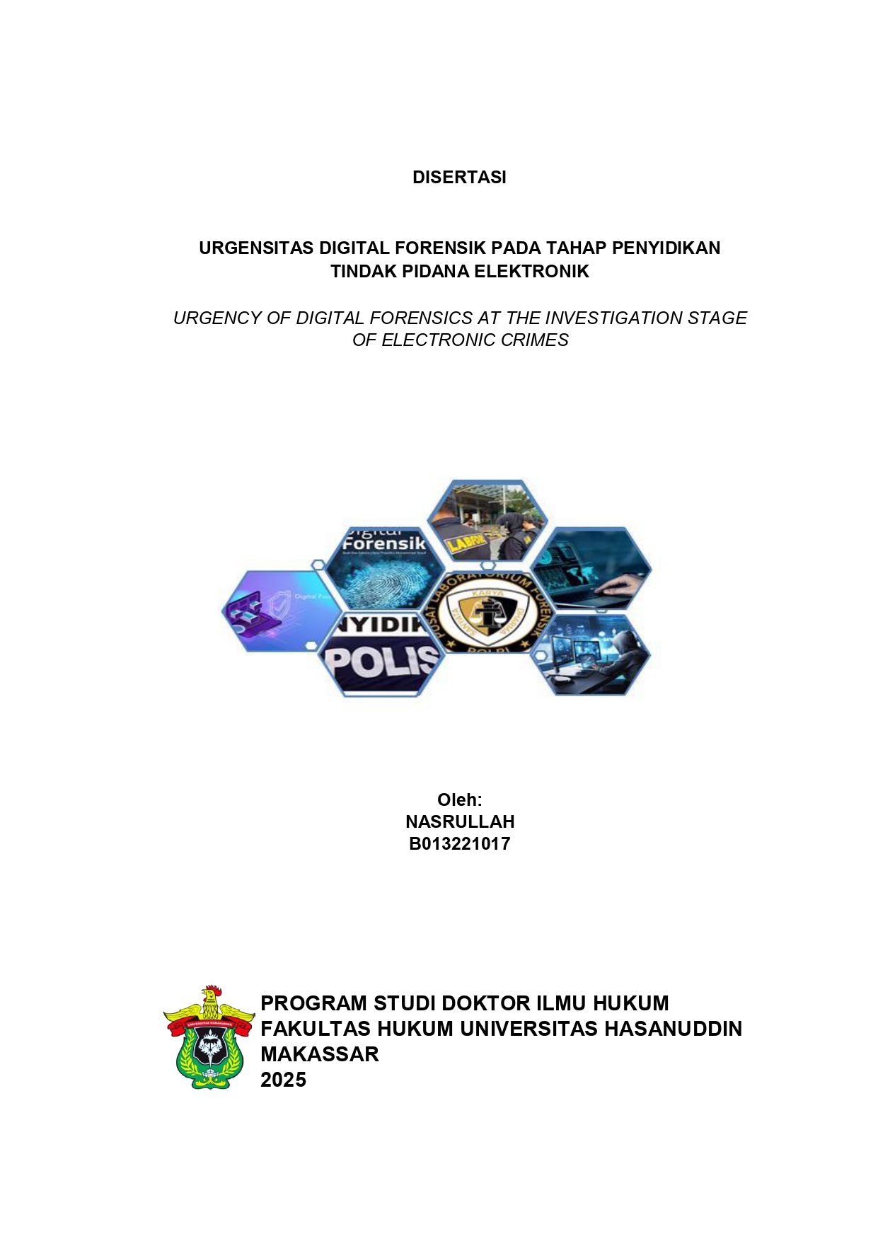 NASRULLAH, NASRULLAH (2025) URGENSITAS DIGITAL FORENSIK PADA TAHAP PENYIDIKAN TINDAK PIDANA ELEKTRONIK = URGENCY OF DIGITAL FORENSICS AT THE INVESTIGATION STAGE OF ELECTRONIC CRIMES. Disertasi thesis, UNIVERSITAS HASANUDDIN.