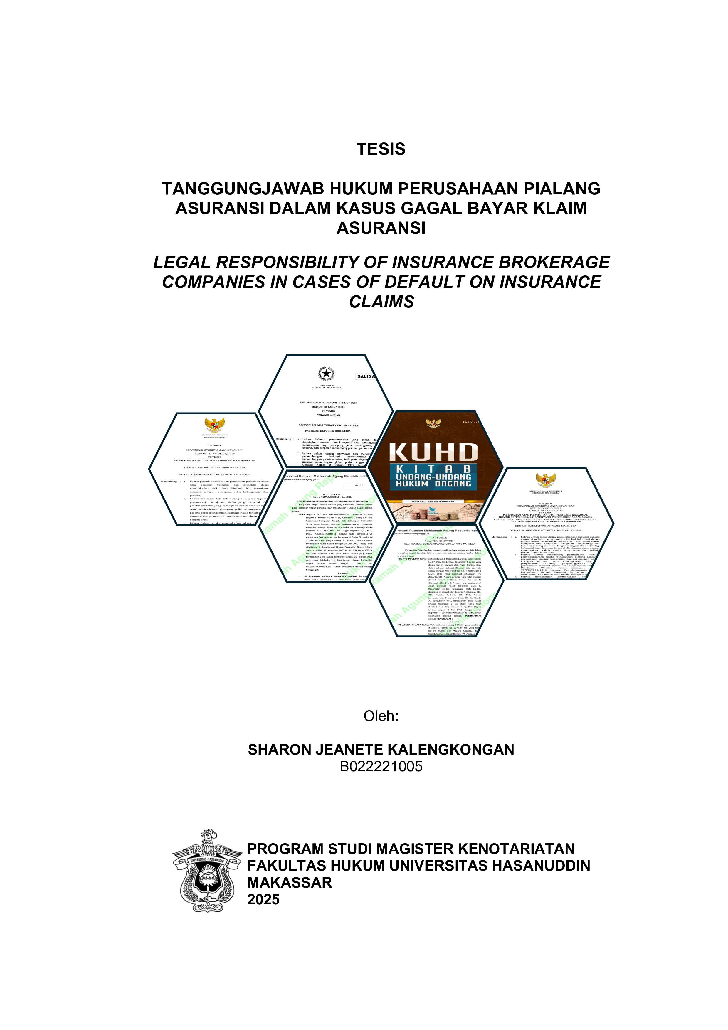 KALENGKONGAN, SHARON JEANETE (2025) TANGGUNGJAWAB HUKUM PERUSAHAAN PIALANG ASURANSI DALAM KASUS GAGAL BAYAR KLAIM ASURANSI = LEGAL RESPONSIBILITY OF INSURANCE BROKERAGE COMPANIES IN CASES OF DEFAULT ON INSURANCE CLAIMS. Thesis thesis, Universitas Hasanuddin.