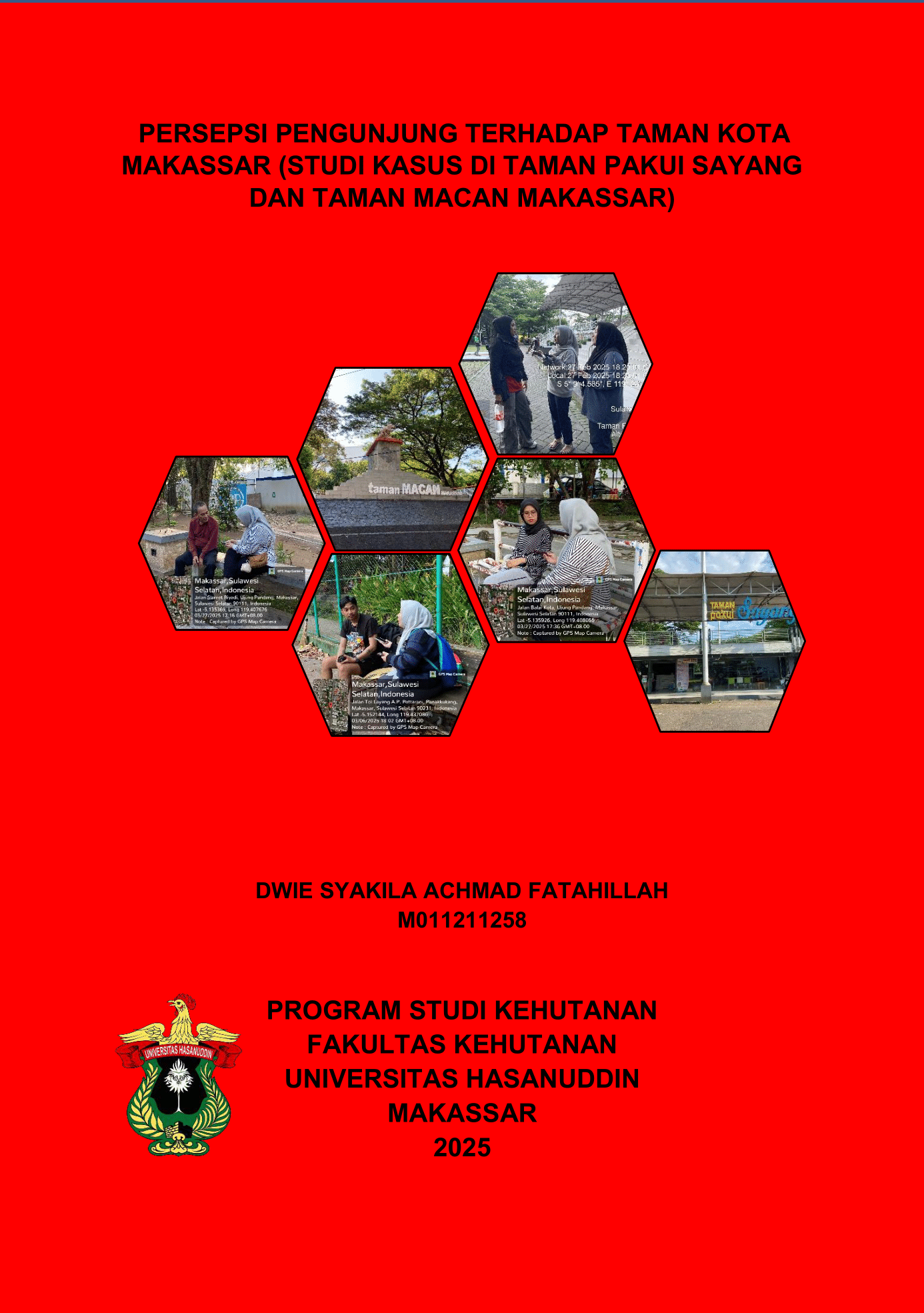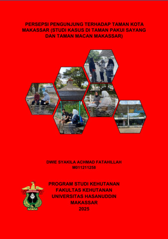 FATAHILLAH, DWIE SYAKILA ACHMAD (2025) Persepsi Pengunjung Terhadap Taman Kota Makassar (Studi Kasus di Taman Pakui Sayang dan Taman Macan Makassar) = Visitor Perception of Urban Parks in Makassar: A Case Study of Pakui Sayang Park and Macan Park. Skripsi thesis, UNIVERSITAS HASANUDDIN MAKASSAR.