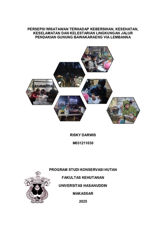 DARWIS, RISKY (2025) Persepsi Wisatawan Terhadap Kebersihan, Kesehatan, Keselamatan, dan Kelestarian Lingkungan Jalur Pendakian Gunung Bawakaraeng Via Lembanna = "Tourists' Perception of Hygiene, Health, Safety, and Environmental Sustainability on the Mount Bawakaraeng Hiking Trail via Lembanna.". Skripsi thesis, UNIVERSITAS HASANUDDIN MAKASSAR.