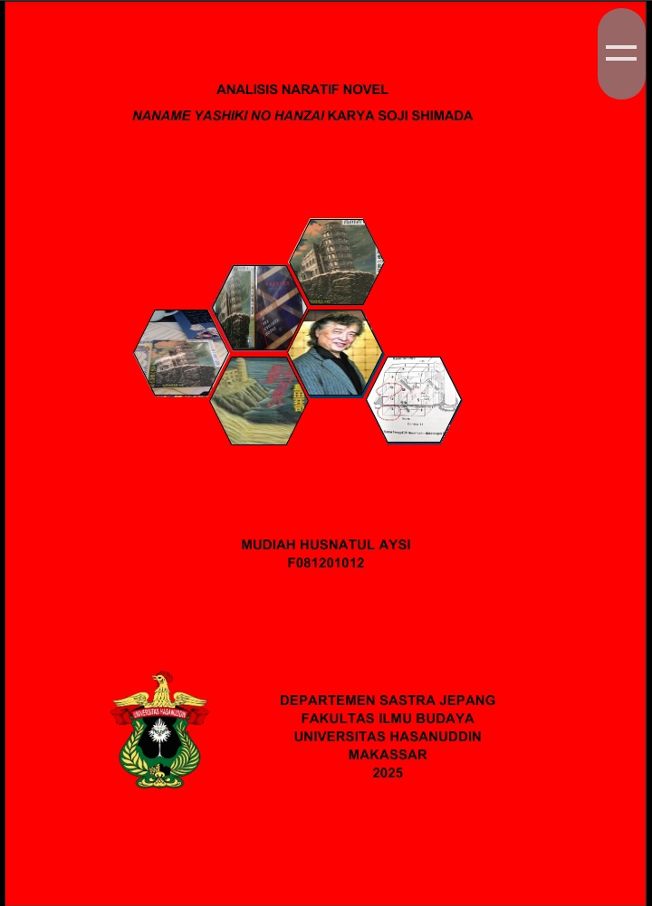 AYSI, MUDIAH HUSNATUL (2025) Analisis Naratif Novel Naname Yashiki No Hanzai Karya Soji Shimada = analyze the narrative structure of the novel Naname Yashiki no Hanzai by Soji Shimada. Skripsi thesis, Universitas Hasanuddin.