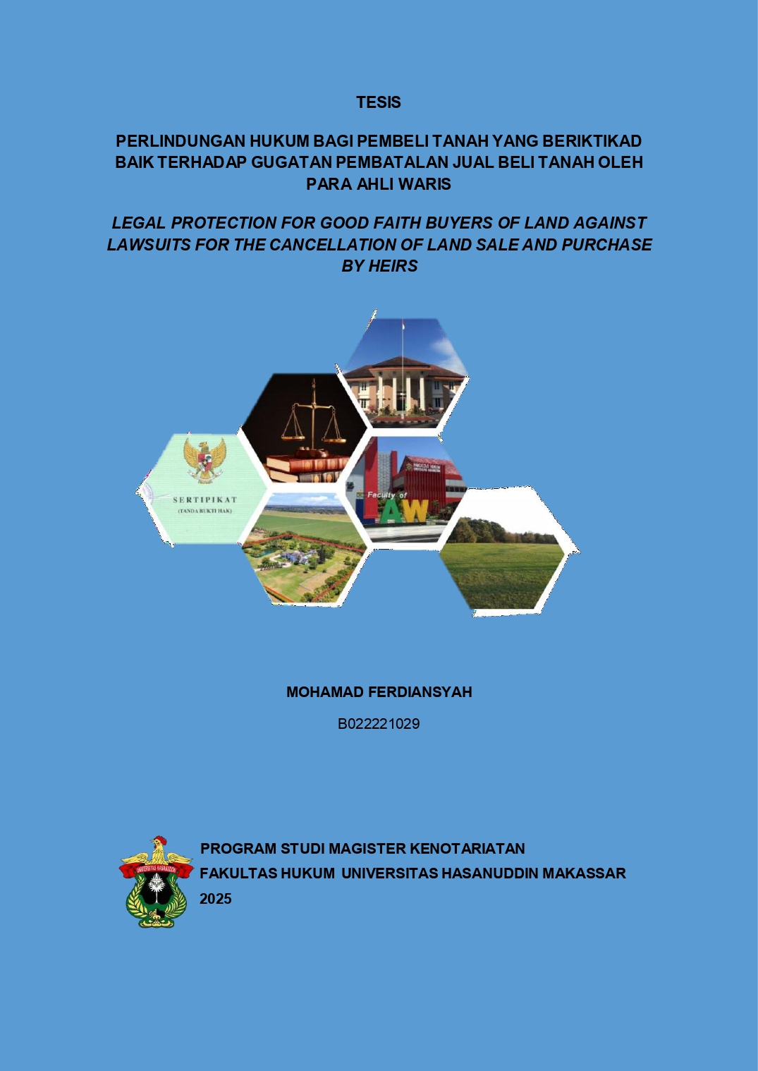 FERDIANSYAH, MOHAMAD (2025) PERLINDUNGAN HUKUM BAGI PEMBELI TANAH YANG BERIKTIKAD BAIK TERHADAP GUGATAN PEMBATALAN JUAL BELI TANAH OLEH PARA AHLI WARIS = LEGAL PROTECTION FOR GOOD FAITH BUYERS OF LAND AGAINST LAWSUITS FOR THE CANCELLATION OF LAND SALE AND PURCHASE BY HEIRS. Thesis thesis, Universitas Hasanuddin.