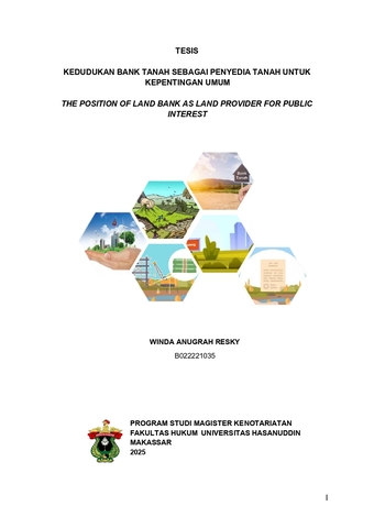 RESKY, WINDA ANUGRAH (2025) KEDUDUKAN BANK TANAH SEBAGAI PENYEDIA TANAH UNTUK KEPENTINGAN UMUM = THE POSITION OF LAND BANK AS LAND PROVIDER FOR PUBLIC INTEREST. Thesis thesis, Universitas Hasanuddin.